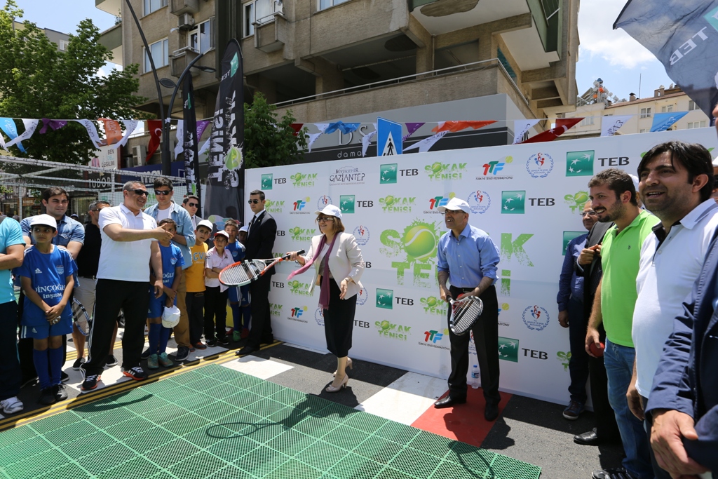 Gaziantep Büyükşehir Belediyesi’nin evsahipliğinde; Türkiye Tenis Federasyonu (TTF) ve Türkiye Ekonomi Bankası’nın (TEB) sponsorluğunda düzenlenen sokak tenisinin açılışında Maliye Bakanı Mehmet Şimşek, Gaziantep Büyükşehir Belediye Başkanı Fatma Şahin, TTF Başkanı Cengiz Durmuş ve TEB Genel Müdür Yardımcısı Gökhan Mendi maç yaptı.