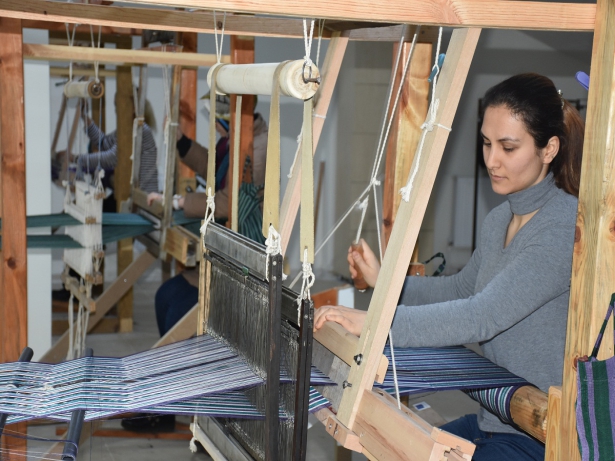 Kutnu dokuma ve özellikleri hakkında da bilgilendirilen kursiyerler, ayrıca tezgahta kutnu kumaşını dokuyarak, aksesuar ve dekoratif ürünler yapmayı da öğrendi.