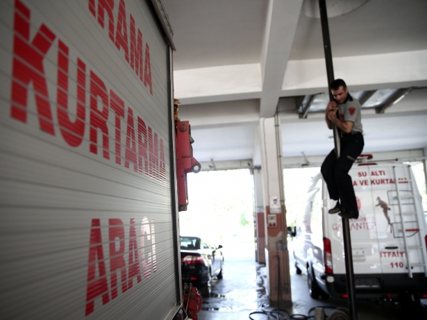 Vardiya değişimlerini "itfaiyeci duası" ile gerçekleştiren "yangın savaşçıları", zinde kalmak için de sürekli spor yapıyor.