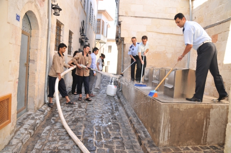 Büyükşehir Belediyesi tarafından sokak sağlıklaştırması yapılan Bey Mahallesinde halkın çevre temizliği konusunda bilinçlendirilmesi çerçevesinde sokakların yıkanması, ilaçlanması ve estetik anlamda zenginliğin sağlanması için bitkilendirme çalışmaları yapan takım üyeleri mahalle sakinlerini sosyal duyarlılığa davet ettiler.