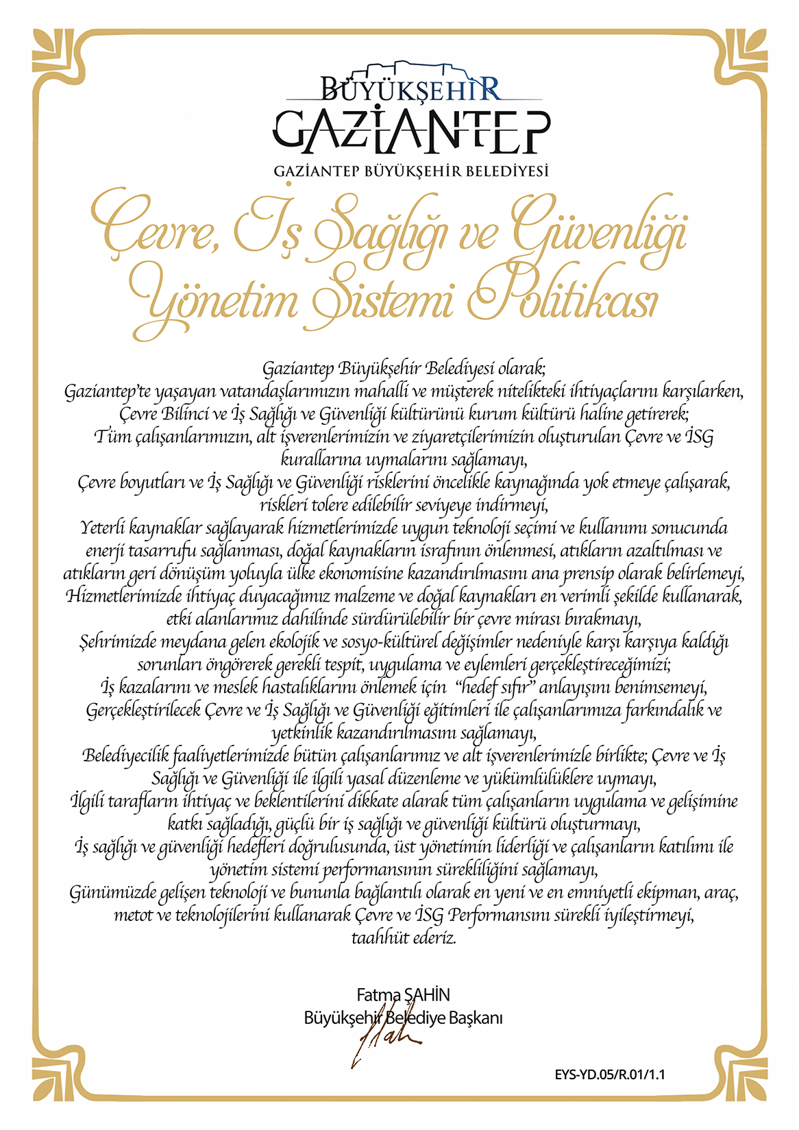 Çevre, İş Sağlığı ve Güvenliği Yönetim Sistemi Politikamız