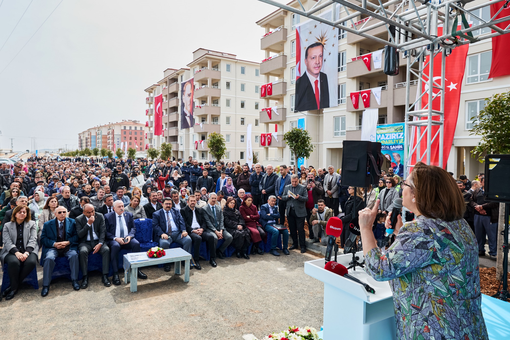 “Belediye bünyesinde sorun çözme kapasiteni güçlendirmek gerekiyor. Bazen bu da yavaş kalıyor ve bunu da çözmek için Gazi Konut’u kurduk. İşi ehline verip adaletli davranmayı öncelik edindik. Bu memleketin en büyük iki sorunu var konut ve trafik. Büyüyoruz ve irileşmeden sağlıklı büyümek lazım. Bunun yolu şehir planlaması. Ne kadar kişi yaşayacaksa bir alanda ona göre okul, yeşil alan, camii, sosyal donatı, GASMEK planlanıp yapılıyor. Yaşam kalitesini yükseltip vatandaş memnuniyeti arttıracak çalışma yapmak gerekiyor. İşte konut meselesine böyle baktık biz. 6 Şubat Depremleri sonrası bizim konut açığımız daha da arttı. Bunu hızlı bir şekilde toparlamak gerekiyordu. 10 bin konut için 60 bin konut talebi var. Bu arz talebi dengelememiz lazım. Geldiğimiz noktada anahtarları alacaksınız içeri gireceksiniz sizlerle beraber bende çok heyecanlıyım. Bu şehir için yapacak çok işimiz, sevdamız, hayallerimiz var. Ananın, babanın, gencin, yaşlının mutlu olduğu, geleceğe endişeyle bakmadığı bir Gaziantep kuracağız.”