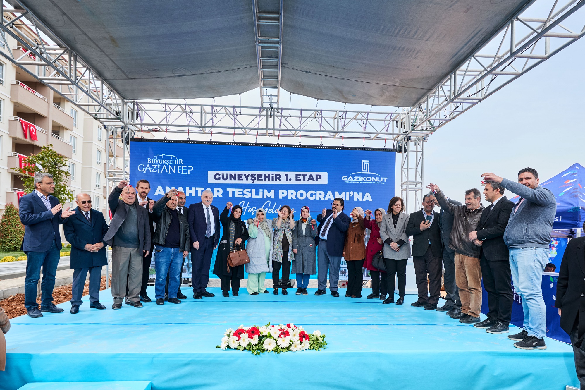 Gaziantep Büyükşehir Belediye Başkan Vekili Erdem Güzelbey törende konutlar ve yeni çalışmalar hakkında bilgi verdi. Konuşmaların ardından anahtarlar hak sahiplerine teslim edildi. Tören sonrası örnek daireler gezildi.