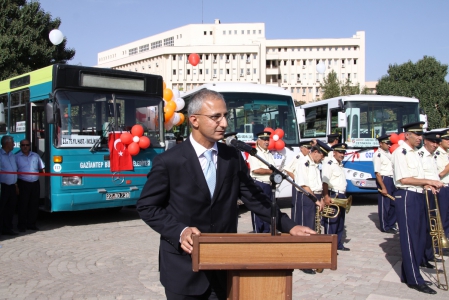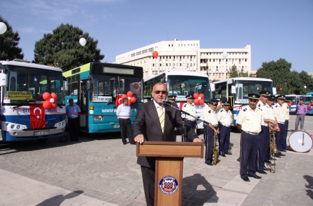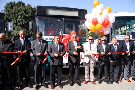 Büyükşehir Belediye Başkanı Dr. Asım Güzelbey, E-Kent Firması Genel Müdürü Vahit Özkan, Büyükşehir Belediyesi Genel Sekreteri İ.Fuat Özçörekçi, GASKİ Genel Müdürü Fahreddin Uslusoy, Belediye Yöneticileri, firma yetkilileri ve vatandaşların katılımı ile gerçekleştirilen törenle E-Kart ile hizmet verecek olan ilk araçlar hizmete sokuldu.