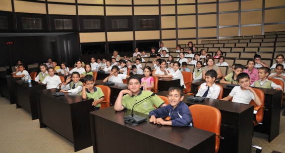 Büyükşehir Belediyesi Genel Sekreter Yardımcısı İbrahim Evrim, Meclis Salonu’nda minik öğrencilere kısa bir sunum yaparak yerel yönetimler ve belediye çalışmaları hakkında bilgiler verdi.