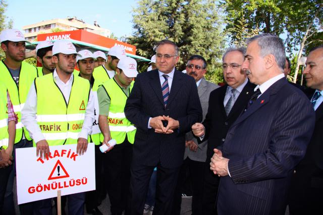 Gaziantep Valisi Süleyman Kamçı, Büyükşehir Belediye Başkanı Dr. Asım Güzelbey ve İl Emniyet Müdürü Dr. Halil Yılmaz trafik gönüllüsü öğrencilerin çalışmalarını izlediler