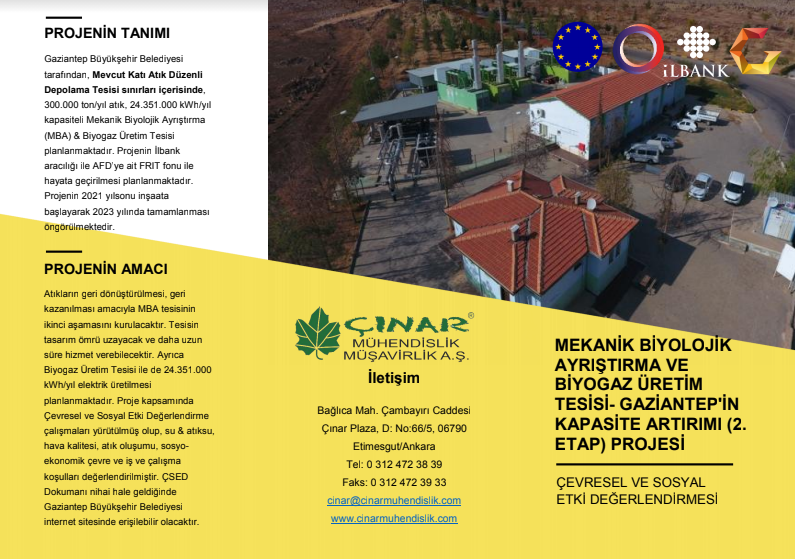 Mekanik, Biyolojik Ayrıştırma ve Biyogaz Üretim Tesis- Gaziantep’in Kapasite Artırımı 2. Etap Projesi için 29 Haziran 2021’de 13.30’da Mavikent Taziye Evi’nde toplantı organize edilirken Nizip Katı Atık, 3. Etap İnşaatı, MRS, RDF ve Eski Katı Atık Sahaları’nın Rehabilitasyonu Projesi içinse 30 Haziran 2021 10.30’da Nizip Katı Atık Düzenli Depolama Alanı Toplantı Salonu’na halk davet ediliyor.