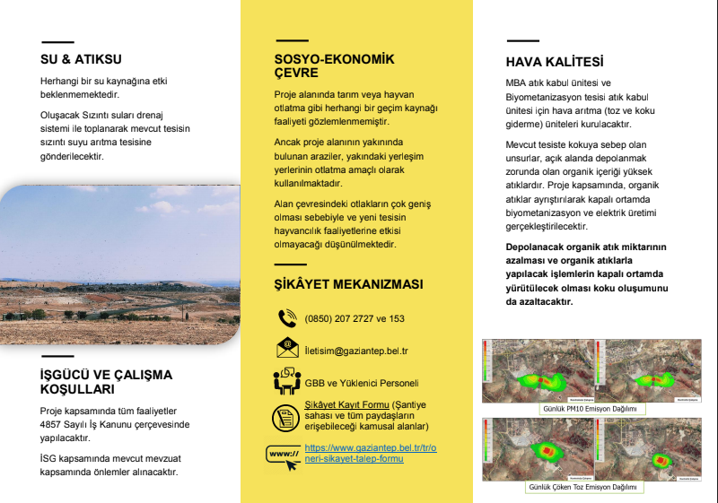 Mekanik, Biyolojik Ayrıştırma ve Biyogaz Üretim Tesis- Gaziantep’in Kapasite Artırımı 2. Etap Projesi sonucunda mevcut depolama tesisinin ömrü uzayacak. Şikayete konu olan koku problemi gibi unsurlar için önlemler alınmış olacak. Olası tüm yetkiler yasal mevzuat ve uluslararası standartlar kapsamında etkisiz kılınacak.