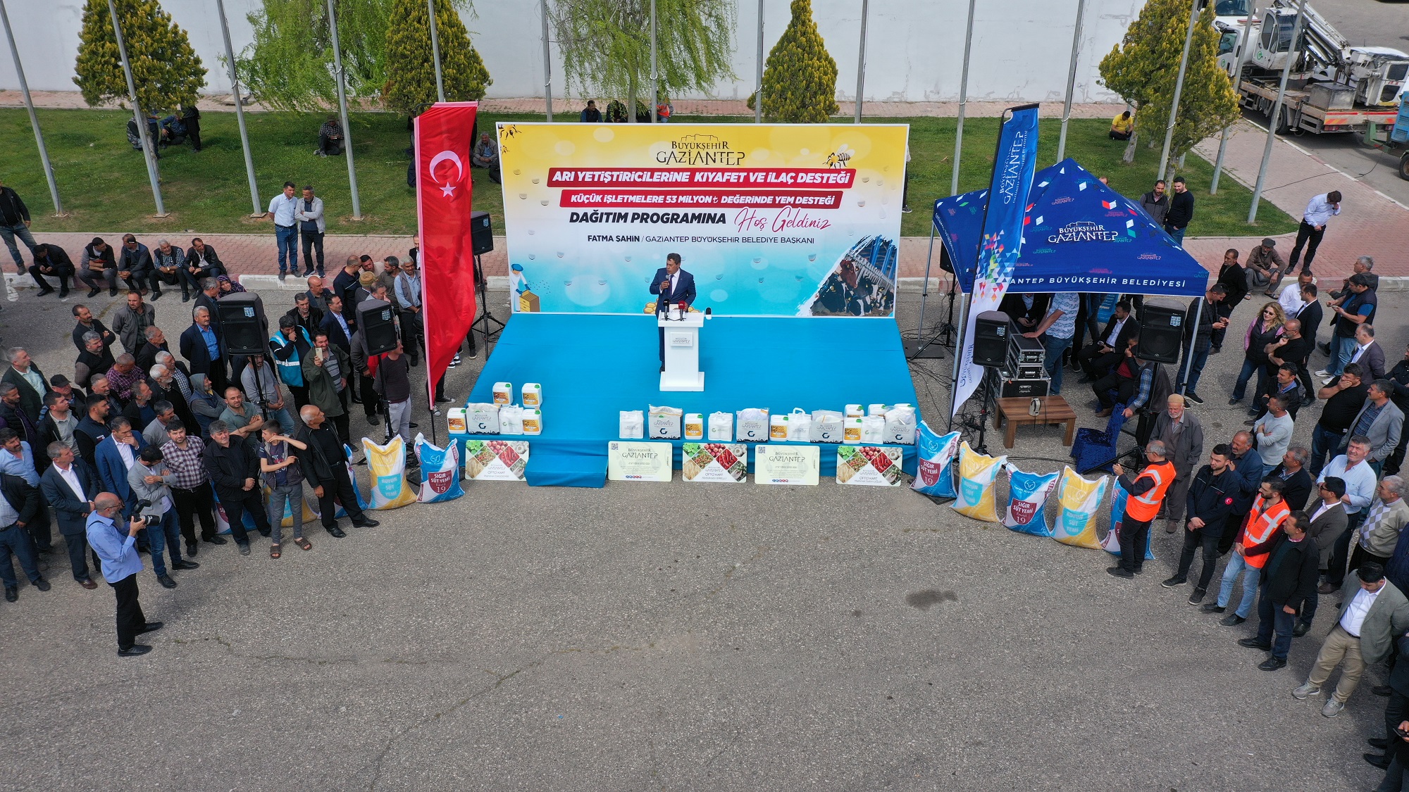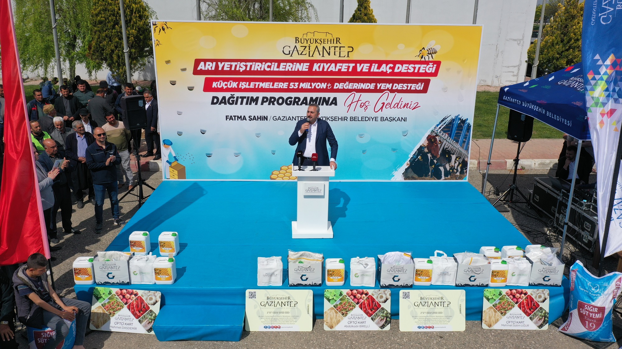 Gaziantep Büyükşehir Belediyesi tarafından arı yetiştiricilerine arı koruyucu ilaç ve giysi, hayvan yetiştiricileri içinse yem dağıtım töreni düzenlendi.
