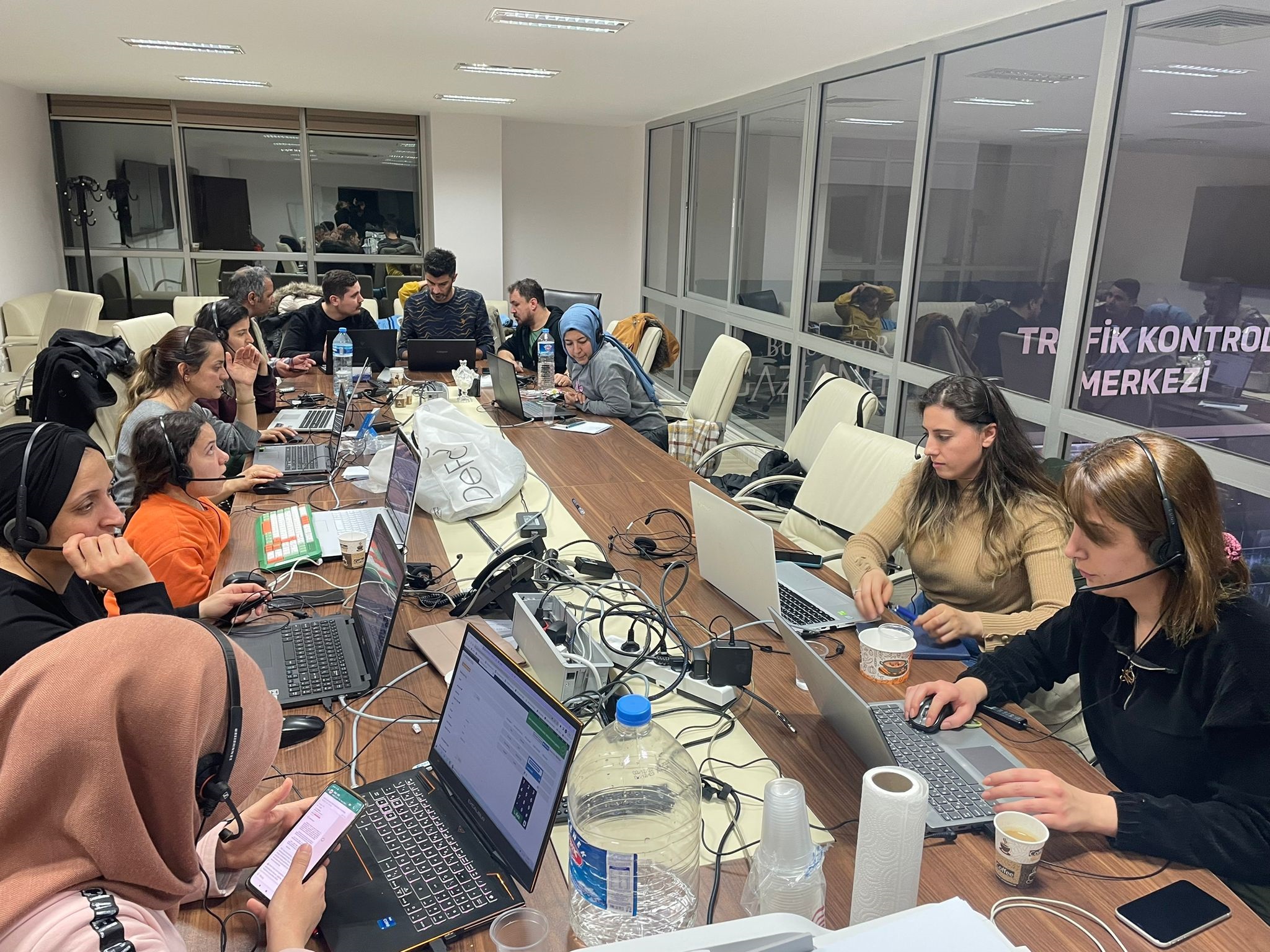 “Deprem anında evini terk edip toplanma alnında aracıyla durarak güvenli iş ortamı oluşana kadar diz üstü bilgisayarıyla vatandaşlarımızın çağrılarını cevaplayarak vatandaşları toplanma alanlarına yönlendiren personellerimiz oldu. Zorda olsa biz bütün ekip görevimizin başındaydık. O gün izinli olan çalışanlarımızda geldi. İkinci depremde de görev başındaydık. Çocuklarımızda yanımızdaydı haliyle. Deprem anında iki çocuğumun elini tuttum sakin bir şekilde oturtturdum ve deprem anında da işimizi yapmaya devam ettik.”