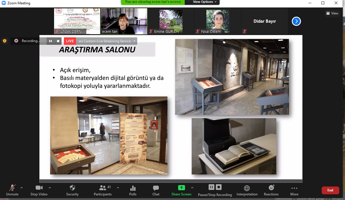 Gaziantep Büyükşehir Belediyesi’ne bağlı Gaziantep Kent Arşivi, Üniversite ve Araştırma Kütüphanecileri Derneği (ÜNAK) ile Türk Kütüphaneciler Derneği (TKD) iş birliğinde gerçekleşen “Bilgi ve Belge Yönetimi Öğrencileri Çevrimiçi Staj Projesi” kapsamında Türkiye’de iyi kütüphane ve arşiv örneği olarak gösterilerek 80 öğrenciye staj eğitimi verdi.