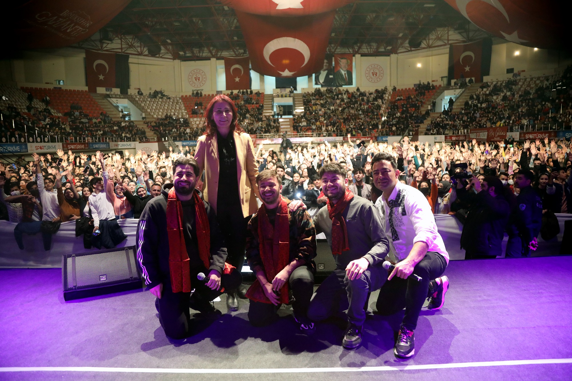 Yarım saatlik söyleşinin ardından sahne alan ünlü sanatçı Emre Aydın ise gençlerin diline pelesenk olan bestelerini seslendirirken hayranlarının şarkı isteklerine de kayıtsız kalmadı. Aydın'a şarkılar boyunca eşlik eden seyirciler akıllarda kalacak bir akşama imza attı.