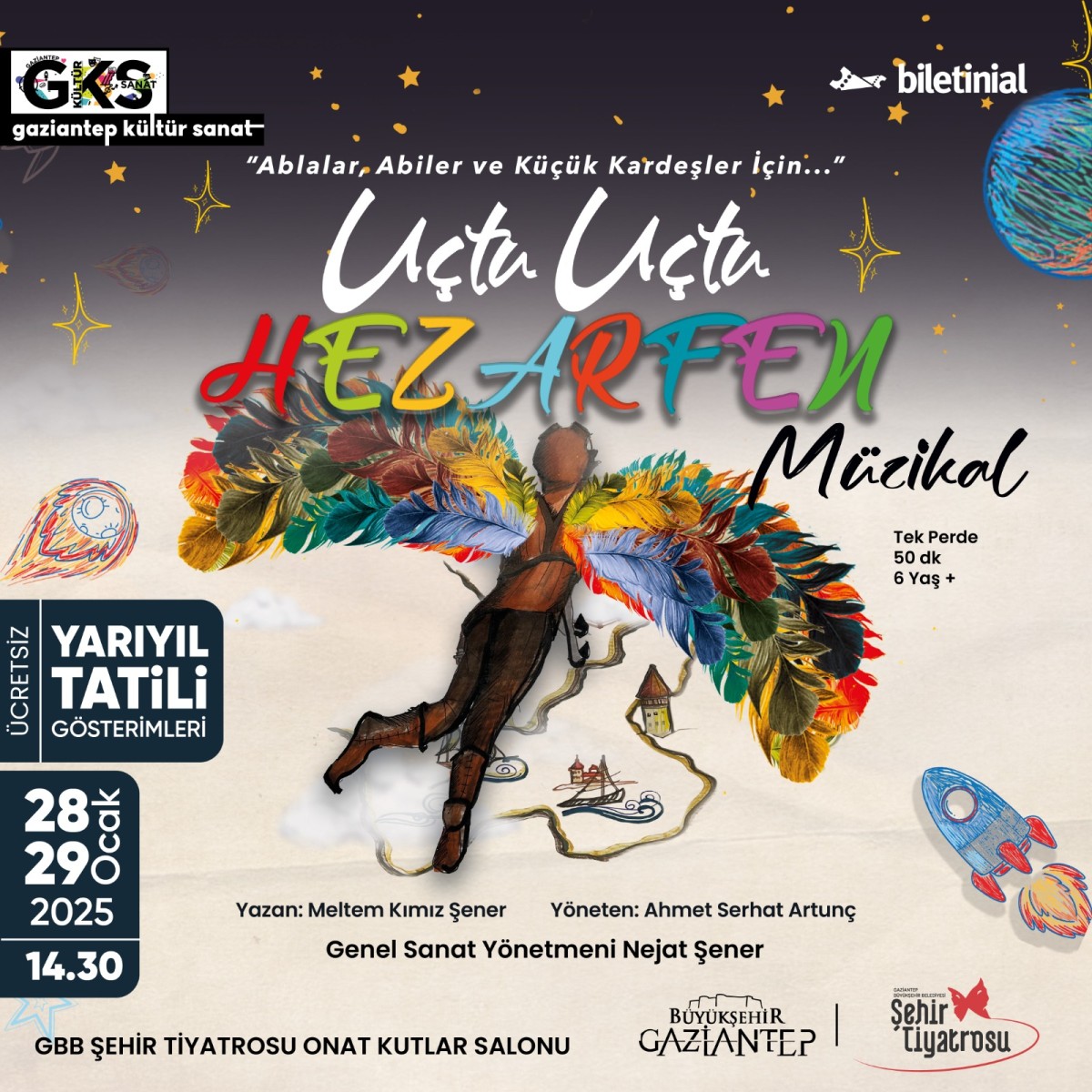 ‘Uçtu Uçtu Hezarfen’ Müzikali, Yarıyıl tatiline özel olarak 28-29 Ocak tarihlerinde GBB Şehir Tiyatrosu Onat Kutlar Sahnesi'nde izleyicisi ile buluşacak...